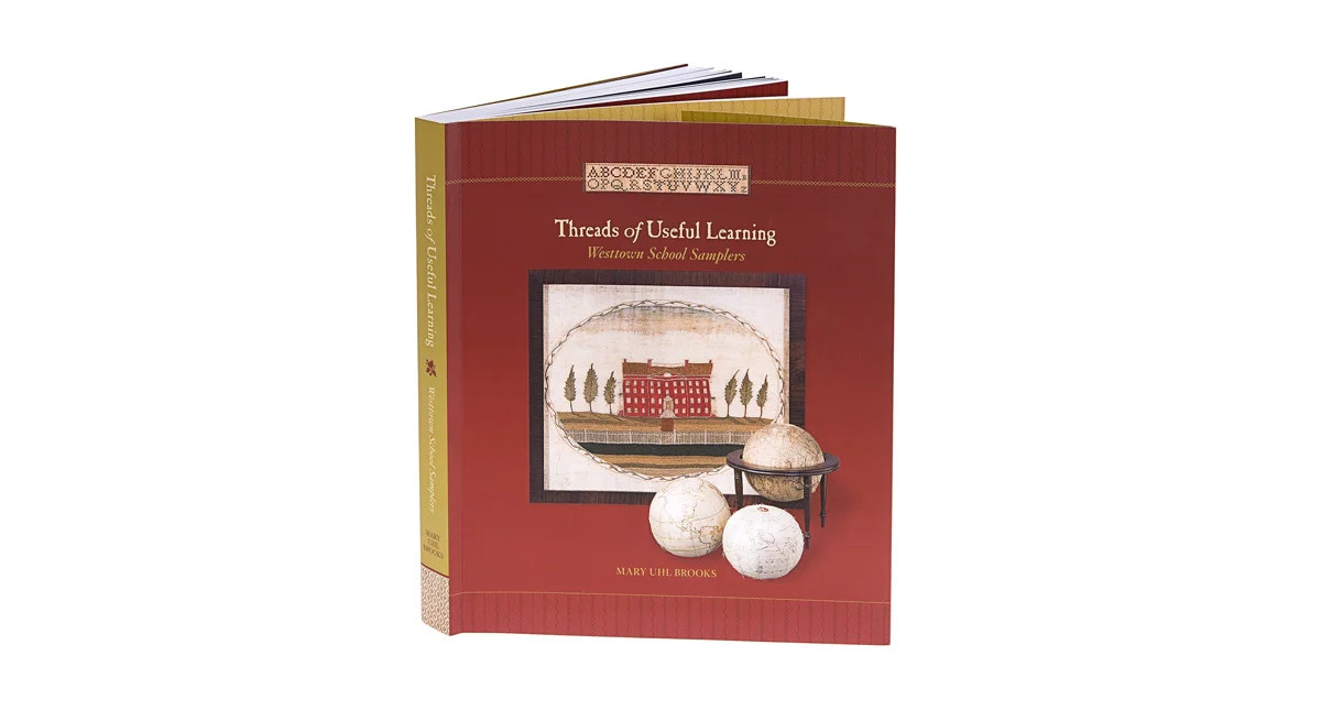 THREADS OF USEFUL LEARNING: WESTTOWN SCHOOL SAMPLERS by Mary Uhl Brooks is an engaging look at the collection of needlework currently held in the Westtown School archives. Documenting works produced by Westtown students from 1799 through 1843, this 346 page catalog showcases the importance of this unique and robust collection of Quaker schoolgirl needlework. Through the inclusion of assets from the rich archives of the school such as papers, accounts and personal artifacts, the stories about the education, religious beliefs and lives of the teachers and girls who created the samplers come alive in an intimate and textural way.